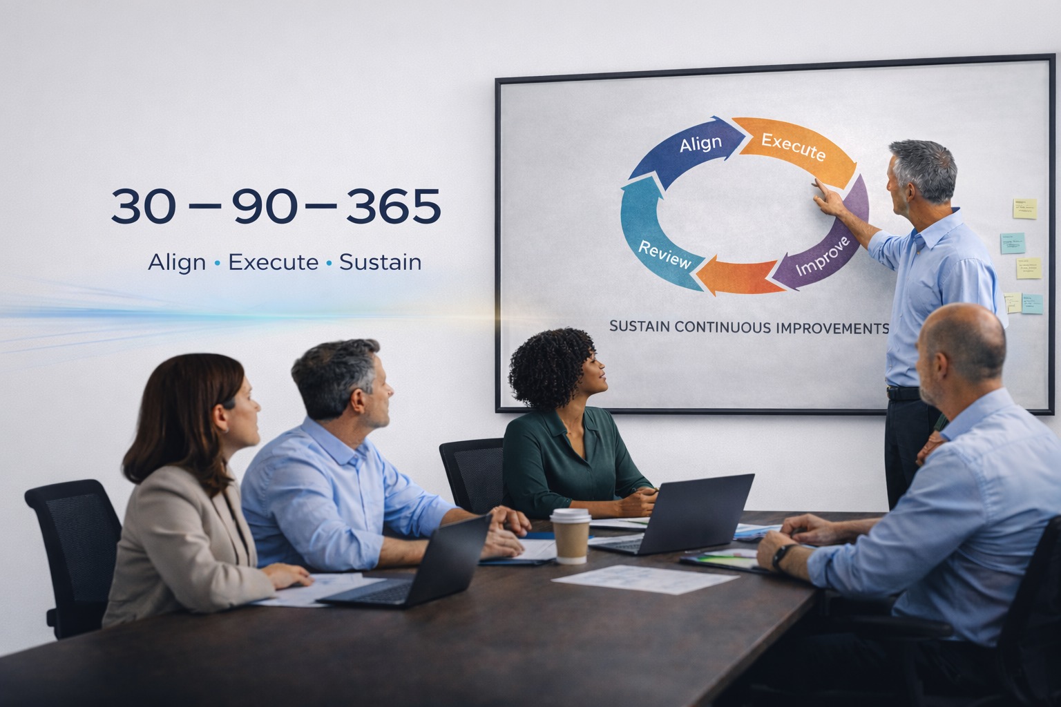 A clear method for identifying improvements, prioritizing by value, and delivering measurable outcomes quickly. Organizations typically begin seeing results within 90 days.